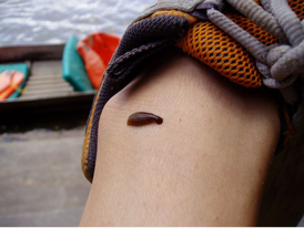 Some examples of parasitism are, a mosquito feeding off a human, a leech feeding of a human, or a tick feeding off a dog.