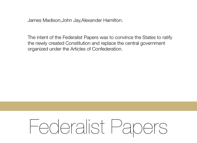 The intent of the Federalist Papers was to convince the States to ratify the newly created Constitution and replace the central government organized under the Articles of Confederation.