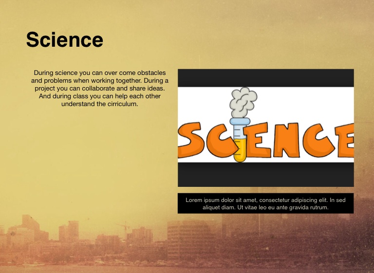During science you can over come obstacles and problems when working together. During a project you can collaborate and share ideas. And during class you can help each other understand the cirriculum.