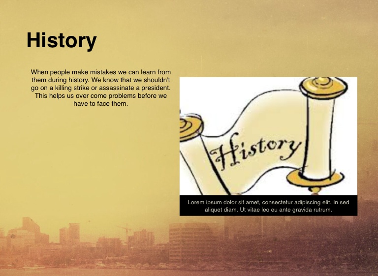 When people make mistakes we can learn from them during history. We know that we shouldn't go on a killing strike or assassinate a president. This helps us over come problems before we have to face them.