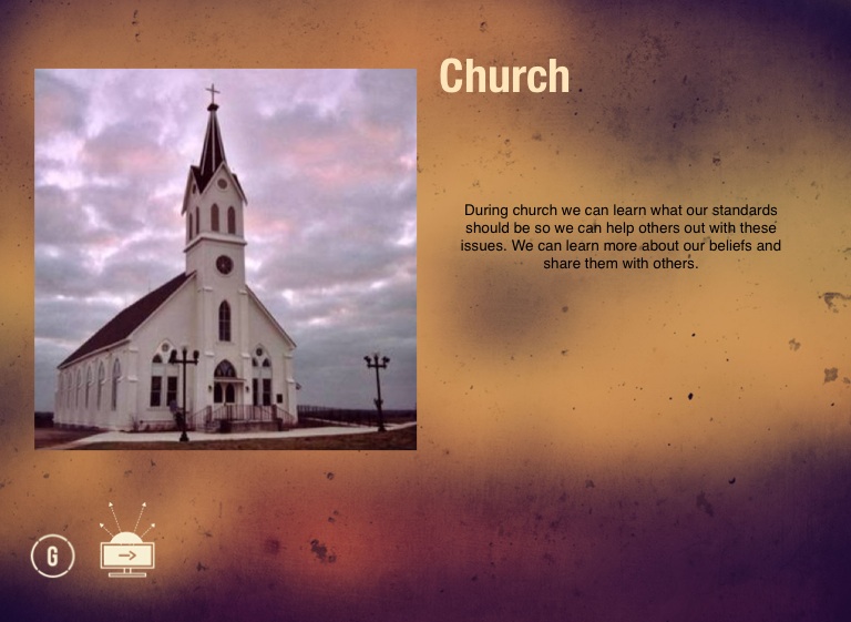 During church we can learn what our standards should be so we can help others out with these issues. We can learn more about our beliefs and share them with others.