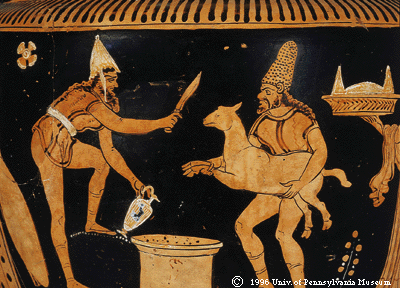 Telemachus and Mentor arrive at Pylos, where they witness an impressive religious ceremony. In which dozens of bulls, are sacrificed to Poseidon.