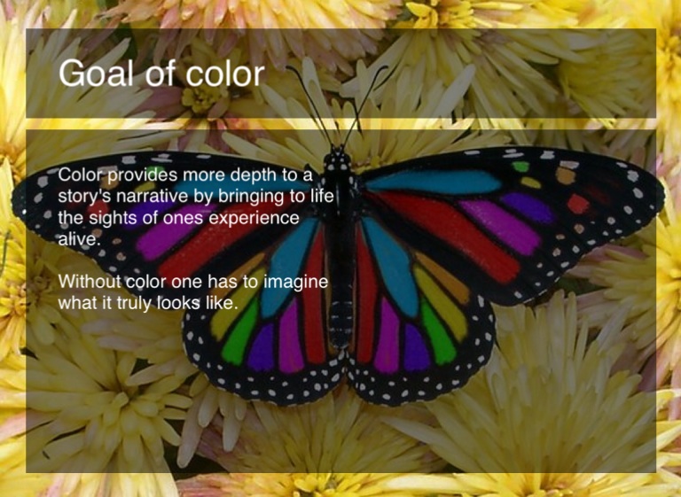 Color provides more depth to a story's narrative by bringing to life the sights of ones experience alive.