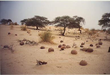 Describe: This piece shows cemeteries in different places. Also, instead of headstones, these people use rocks to mark where their dead was buried.