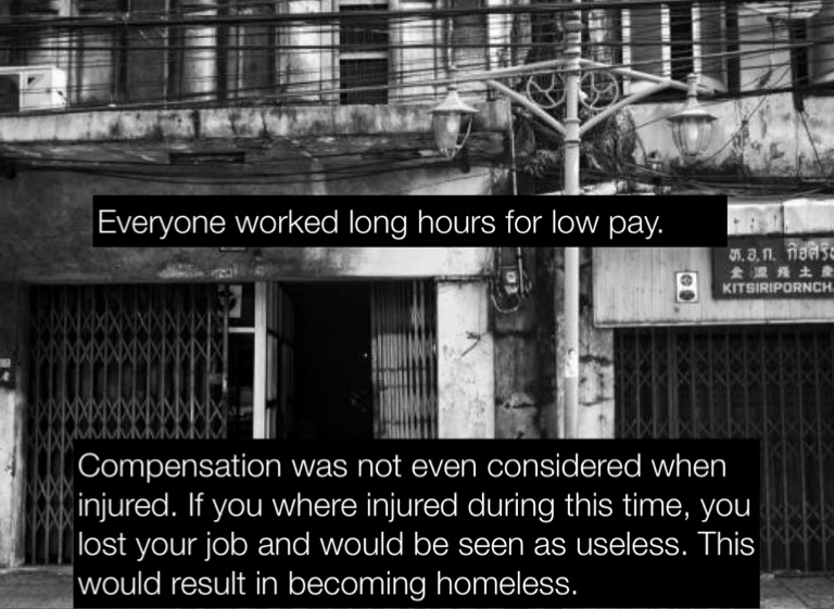 Compensation was not even considered when injured. If you where injured during this time, you lost your job and would be seen as useless. This would result in becoming homeless.