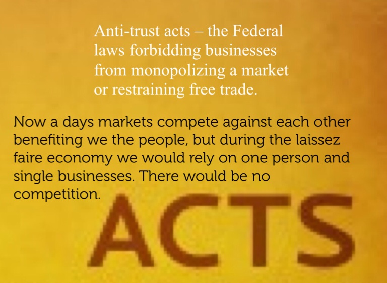 Now a days markets compete against each other benefiting we the people, but during the laissez faire economy we would rely on one person and single businesses. There would be no competition.