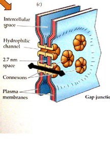 Gap junction: a communicating junction that allows chemical substances to pass between adjacent cells