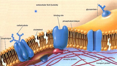 The structure is composed of a lipid bilayer mostly phospholipids with a smaller amounts of cholesterol and glycolipids. Each phospholipid molecule has a polar head and hydrophobic tail.