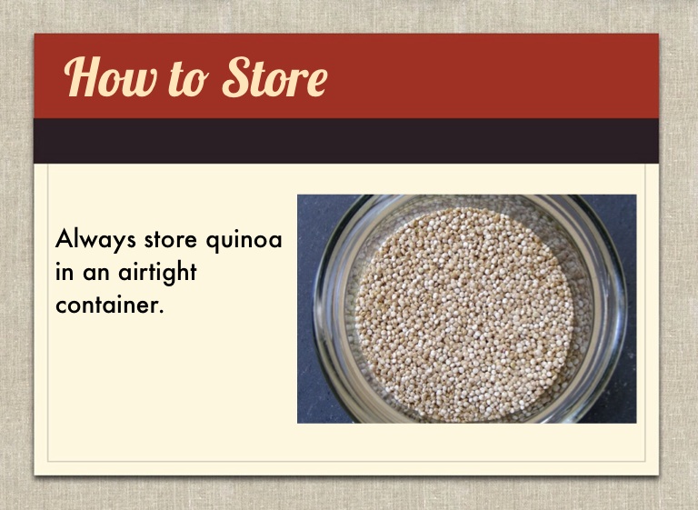 Always store quinoa in an airtight container.