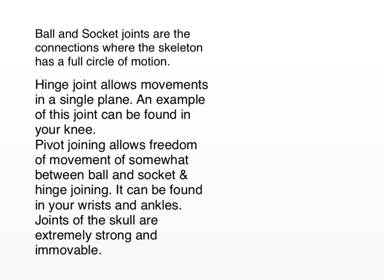 Ball and Socket joints are the connections where the skeleton has a full circle of motion.