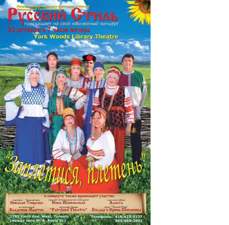 Folk Theatre “Russian Style” is very famous group of singers and dancers. Centered on traditional Russian folklore, they humorous songs, lyrical suites, and pulsating dance numbers, all of which reflect the Russian heritage. The different wood instruments, colourful costumes, and artistic ideas create a performance for audiences of all ages!