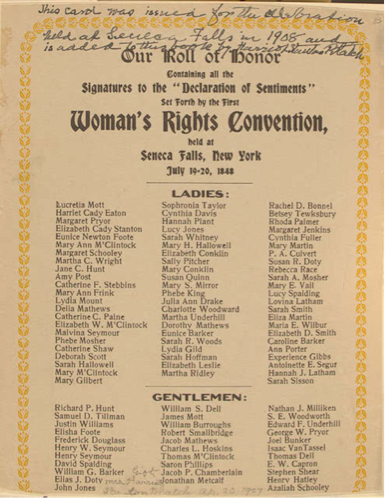 Seneca falls was a convention held for talking about womens rights. The declaration of independence was brought up when it states " All men and women are created equal".