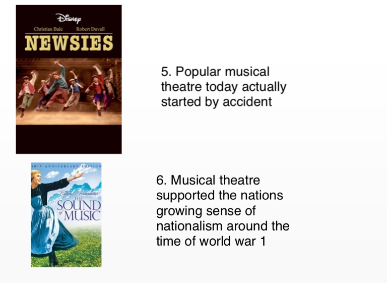 6. Musical theatre supported the nations growing sense of nationalism around the time of world war 1