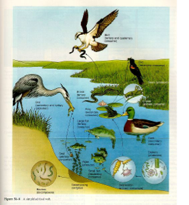 The smallest unit of organization is a single organism,which belongs to a population of other members of its species. The population belongs to a community of different species. The community and abiotic factors together form an ecosystem