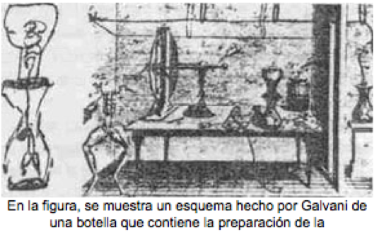 El 6 de noviembre de 1780, mientras experimentaba con uno de los generadores electrostáticos diseñados por Otto von Guericke (1602-1686), Galvani hizo un descubrimiento extraordinario. Observó que cuando los nervios de una pata de rana eran tocados con la punta de un bisturí de disección, ocurrían fuertes sacudidas en los músculos, aún sin que el aparato electrostático estuviera conectado directamente a ninguna de las partes. No obstante, las contracciones ocurrían simultáneamente con las chispas eléctricas de la máquina y solamente cuando se sujetaba el bisturí por la parte conductora de la hoja y no por su mango aislante. Estas observaciones se conocen hoy como el primer experimento de Galvani.