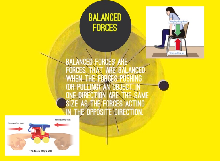balanced forces are Forces that are balanced when the forces pushing (or pulling) an object in one direction are the same size as the forces acting in the opposite direction.