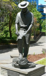 His statue was put up at former National Mutual Plaza off Collins Street in Melbourne unveiled 26 January 1979.