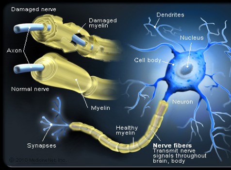 Healthy myelin vs Damaged myelin