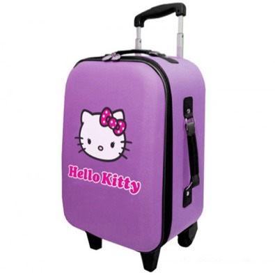 A large container with flat sides and a handle used for carrying clothes and other things when you travel.