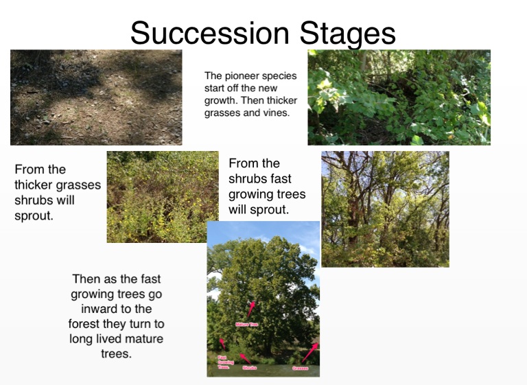 The pioneer species start off the new growth. Then thicker grasses and vines.