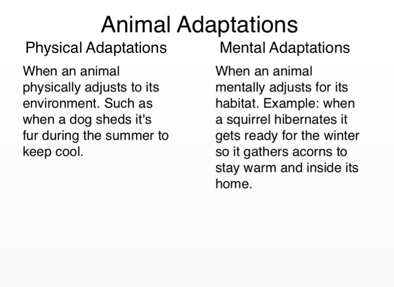 When an animal physically adjusts to its environment. Such as when a dog sheds it's fur during the summer to keep cool.