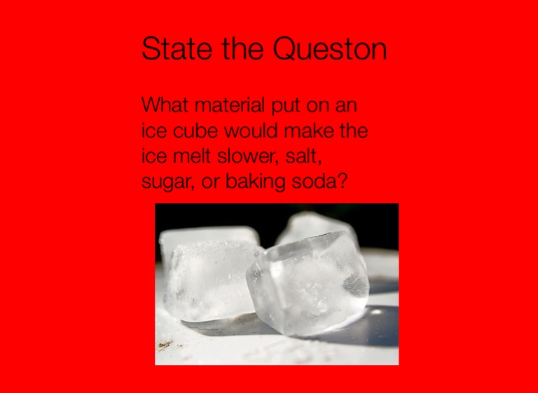 What material put on an ice cube would make the ice melt slower, salt, sugar, or baking soda?