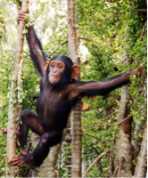 Chimps are tree dwellers but spend much of their time foraging for food on the ground. Chimpanzees mainly eat fruit but will eat a variety of things including: nuts, buds, blossoms, honey, bark; and, occasionally small game animals. When chimps forage, they move around a lot and rarely stay in one place for very long. This is good for the ecosystem. It allows for that part of the forest to recover before the chimps return