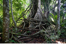 These plants have their roots in the ground and use other trees to climb up into the rainforest canopy to maximise the sunlight they receive. Many start life in the canopy before sending roots down to the ground