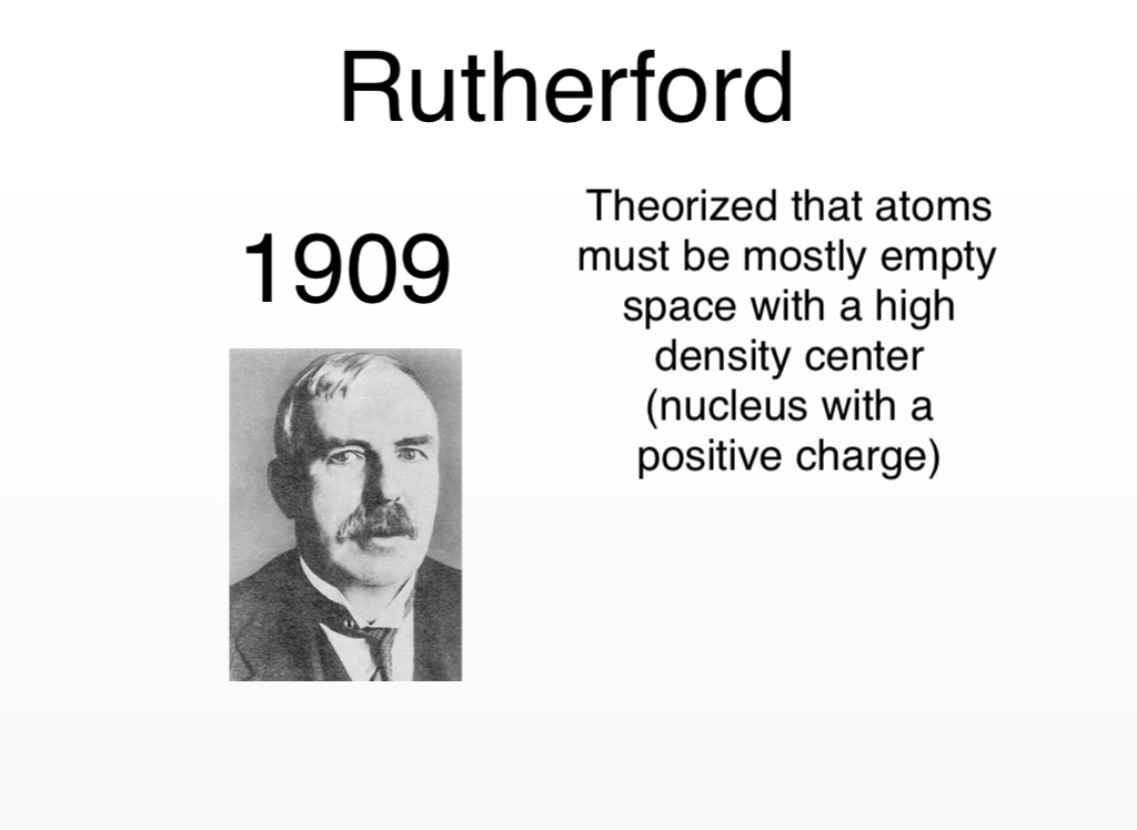 Theorized that atoms must be mostly empty space with a high density center (nucleus with a positive charge)