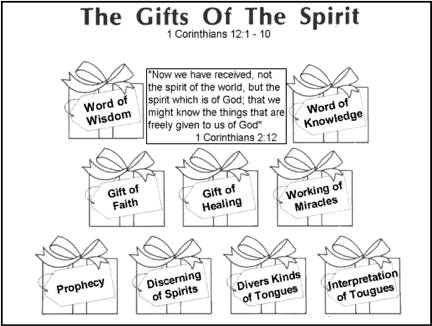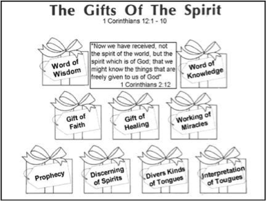 These are the supernatural gifts that will manifest on being Baptized in the Spirit and are the powerful tools of your Ministry /Motivational gifts. These gifts are like the different colours that you will paint with. It's like light being projected through a prism that splits into the colours of the rainbow. For example, if you have the main gift of teaching then as you operate in this gift the Spirit will manifest supernatural wisdom, knowledge, faith etc. in the context of the teaching gift with His enabling and in His timing.