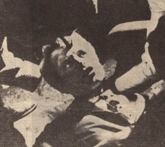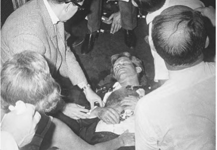 Kennedy's head being supported by helpers after being shot.