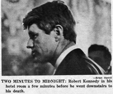 The assassination of Robert F. Kennedy took place in LA California on June 5, 1968. Kennedy was shot walking throught the ambassador hotel after winning California and South Dakota elections. He was taken to the Good Samaritan Hospital where he died 26 hours later. 24 year old Sirhan Sirhan was convicted and sentenced to life for the crime.