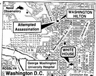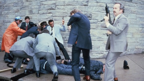 John Hinckley's mugshot after the assassination attempt, which was put in place to try and impress the actress Jodi Foster. Hinckley was later found not guilty by reason of insanity.