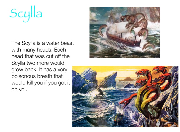 The Scylla is a water beast with many heads. Each head that was cut off the Scylla two more would grow back. It has a very poisonous breath that would kill you if you got it on you.