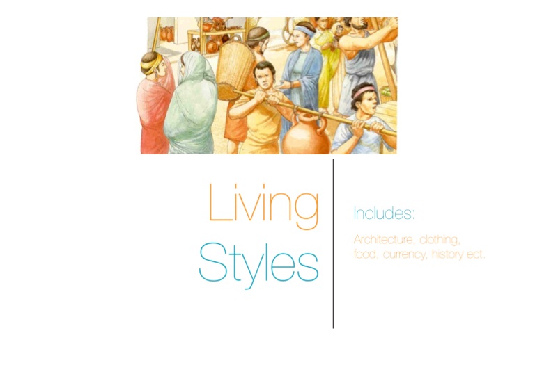 Architecture, clothing, food, currency, history ect.