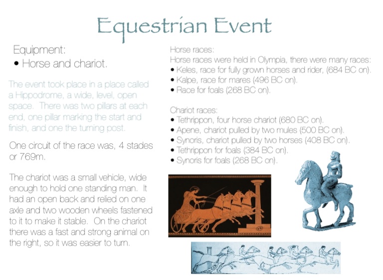 • Keles, race for fully grown horses and rider, (684 BC on).