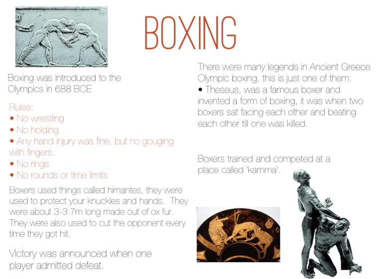 • Theseus, was a famous boxer and invented a form of boxing, it was when two boxers sat facing each other and beating each other till one was killed.