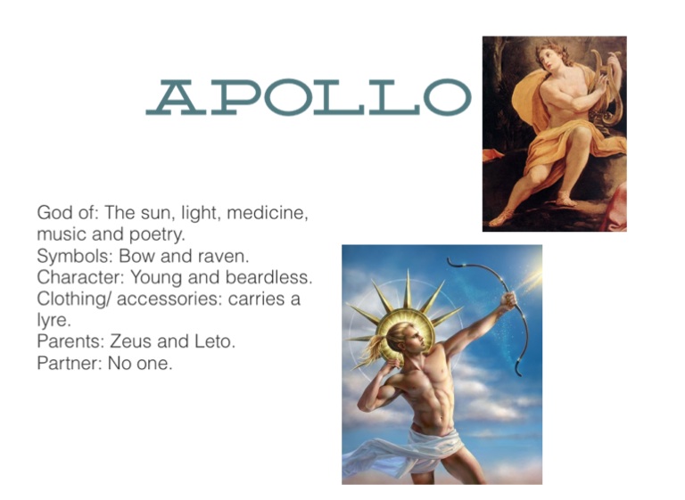 God of: The sun, light, medicine, music and poetry.