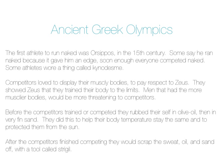 After the competitors finished competing they would scrap the sweat, oil, and sand off, with a tool called strigil.