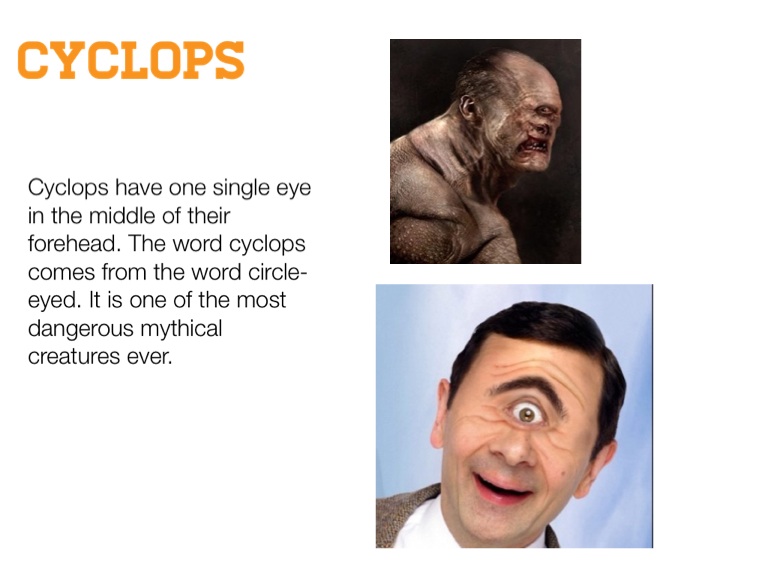 Cyclops have one single eye in the middle of their forehead. The word cyclops comes from the word circle-eyed. It is one of the most dangerous mythical creatures ever.
