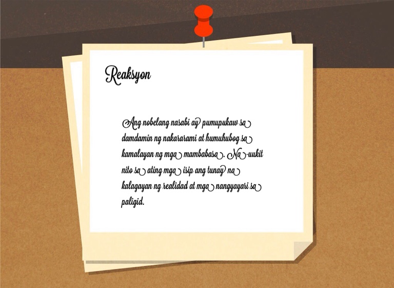 Ang nobelang nasabi ay pumupukaw sa damdamin ng nakararami at humuhubog sa kamalayan ng mga mambabasa. Na-uukit nito sa ating mga isip ang tunay na kalagayan ng realidad at mga nangyayari sa paligid.
