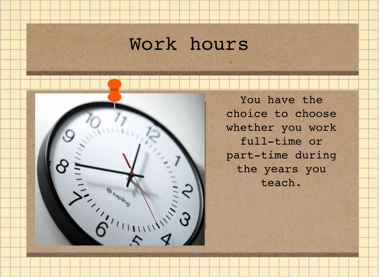 You have the choice to choose whether you work full-time or part-time during the years you teach.