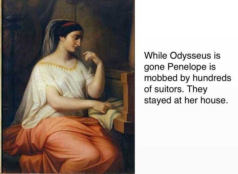 While Odysseus is gone Penelope is mobbed by hundreds of suitors. They stayed at her house.