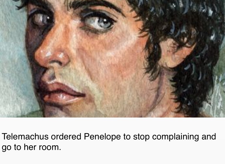 Telemachus ordered Penelope to stop complaining and go to her room.