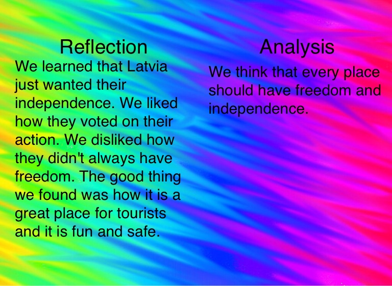 We learned that Latvia just wanted their independence. We liked how they voted on their action. We disliked how they didn't always have freedom. The good thing we found was how it is a great place for tourists and it is fun and safe.
