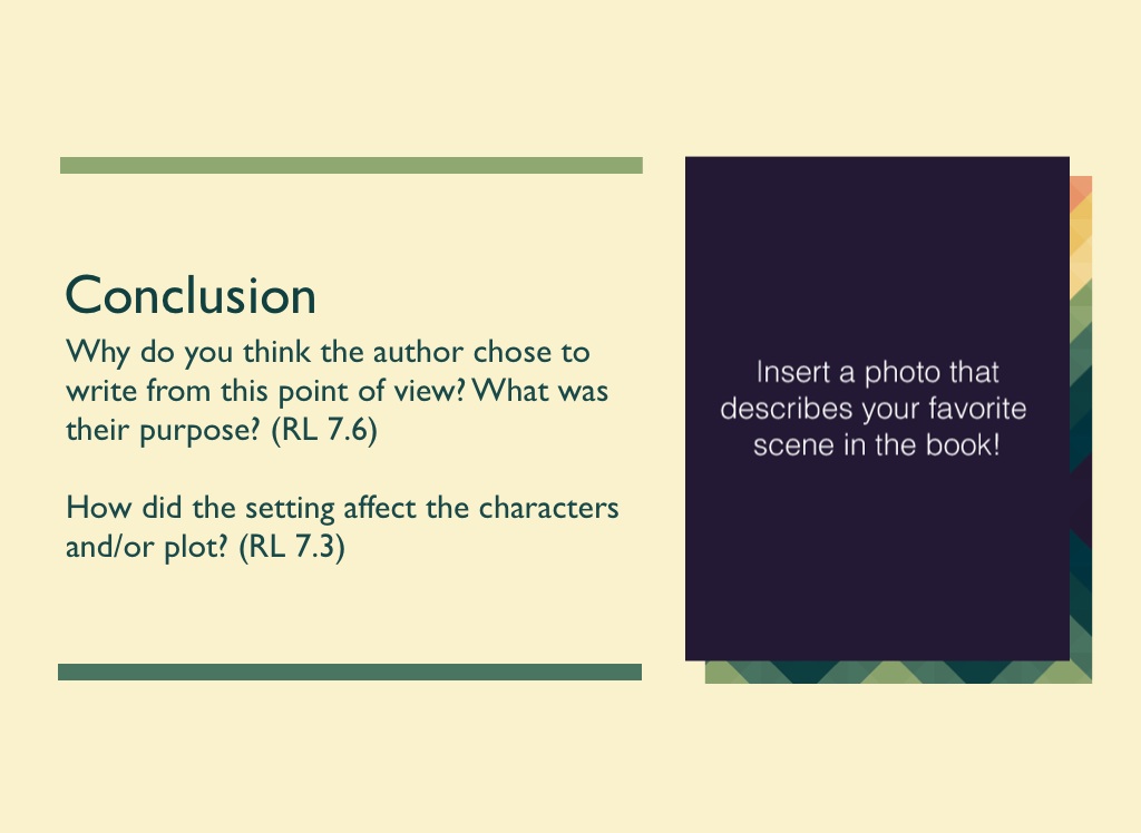 Why do you think the author chose to write from this point of view? What was their purpose? (RL 7.6)
