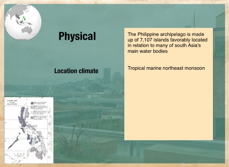 The Philippine archipelago is made up of 7,107 islands favorably located in relation to many of south Asia's main water bodies