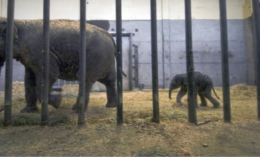 Los elefantes devuelven en el jaula. ¡Los elefantes están devueltos!