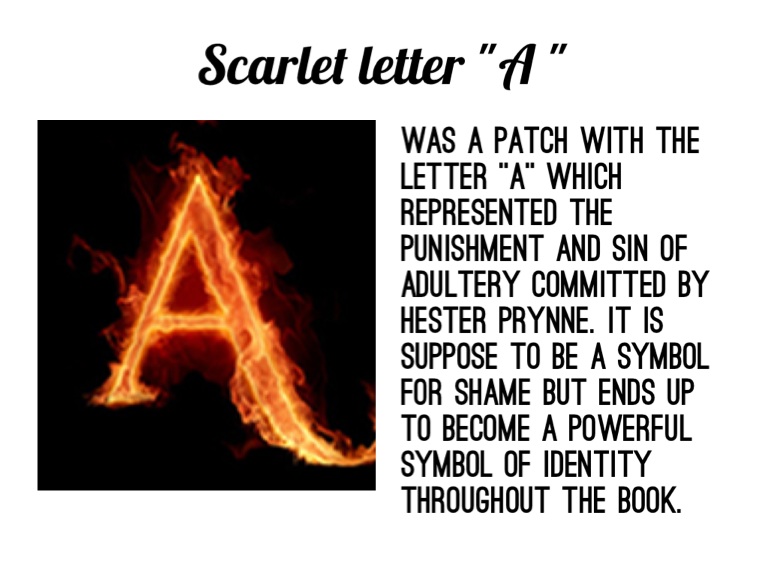 Was a patch with the letter "A" Which represented the punishment and sin of adultery committed by Hester prynne. It is suppose to be a symbol for shame but ends up to become a powerful symbol of identity throughout the book.