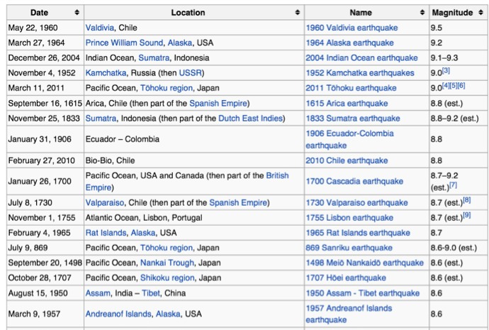 Examples of Earthquakes